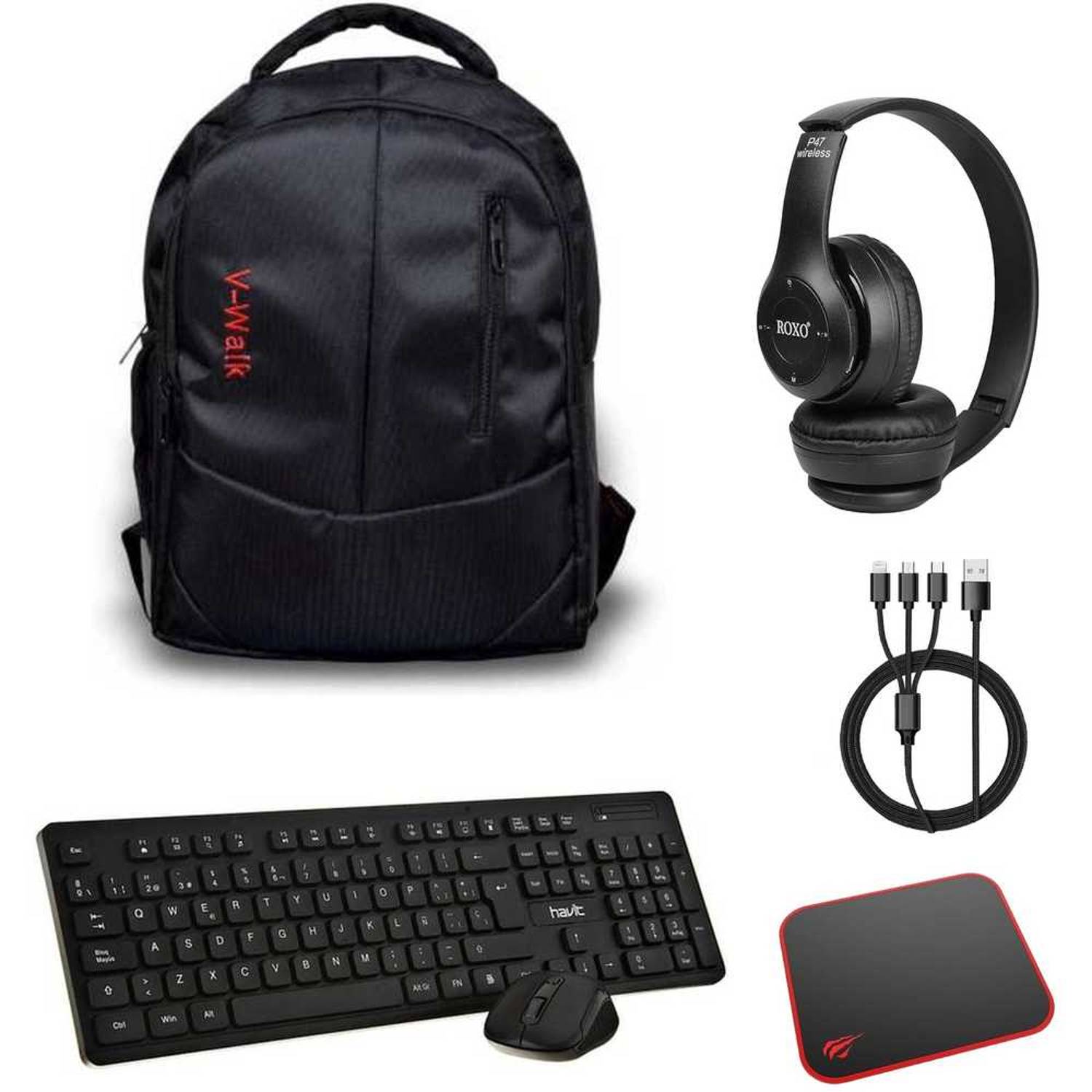Free VWalk 3-in-1 Cable + Bluetooth Headset + Mouse Pad + Havit Keyboard & Mouse + Bagpack