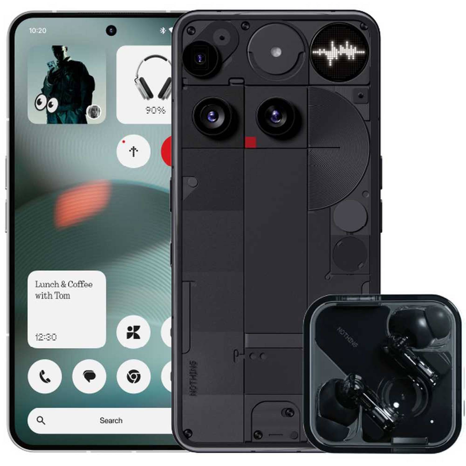- ناثينج (3) بمعالج سناب دراجون 8s الجيل 4 مع نظام كاميرا خلفية ثلاثية دقة 50 ميجابكسل، بطارية سيليكون كربون طويلة الأمد تدوم 24 ساعة، شاشة أموليد مقاس 6.67 بوصة وتردد 120 هرتز وتقنية Glyph Matrix، (512 جيجابايت+ 16 جيجابايت) لون أسود مع سماعات أذن لاسلكية