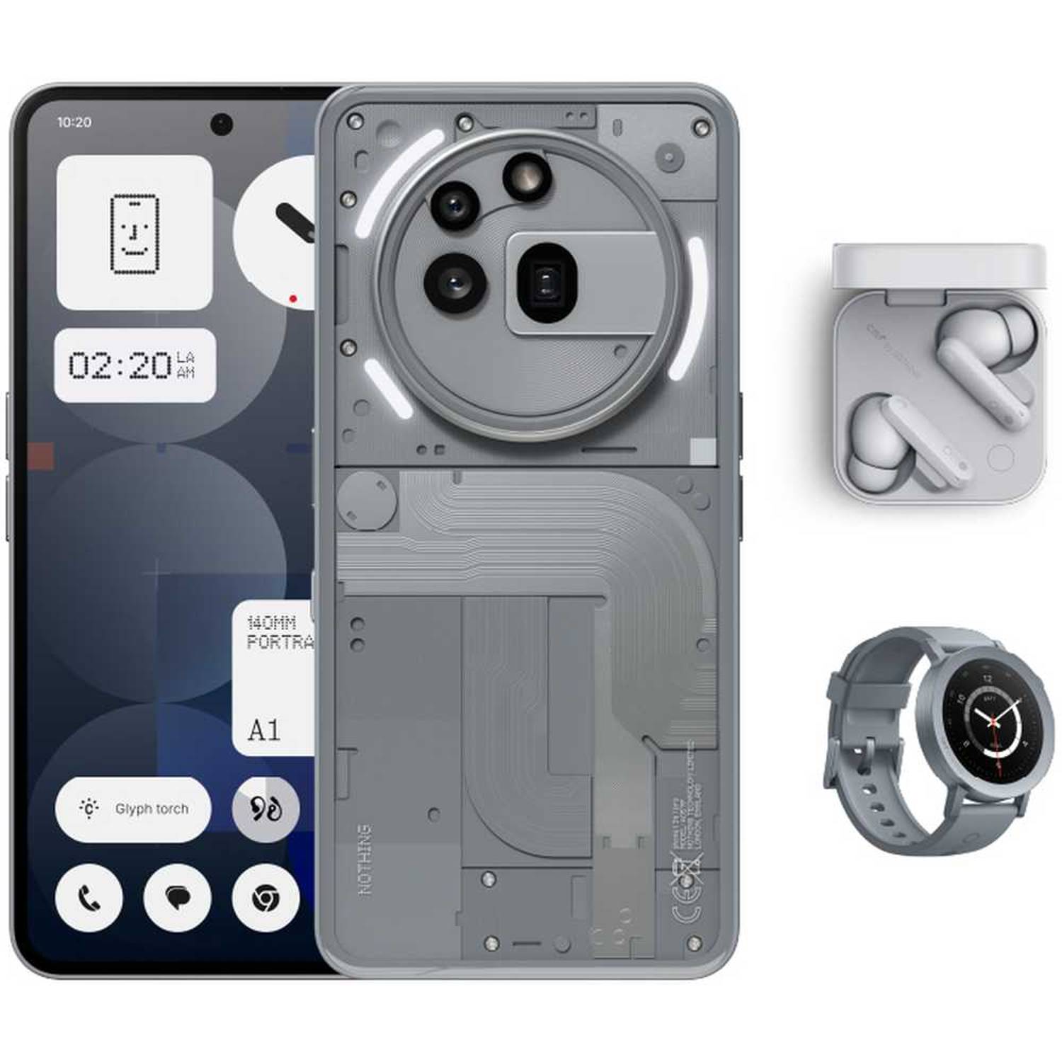 - ناثينج فون (3a) برو (256 جيجابايت، 12 جيجابايت) ثنائي الشريحة يدعم 5G لون رمادي + سماعات أذن + ساعة واتش برو