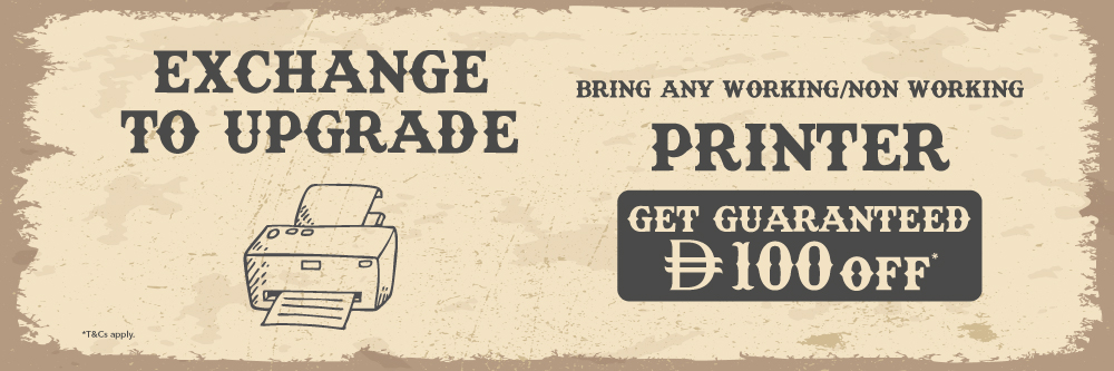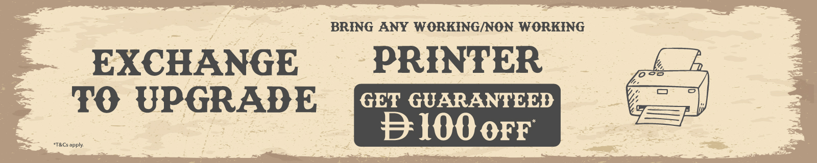 - Trade in any working or non-working Printers and receive an assured AED 100 discount on a new device.