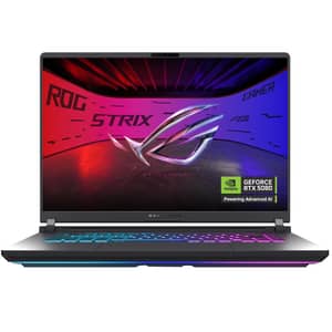- Asus ROG Strix G16 Gaming (2025) Laptop – 2nd Gen / Intel Core Ultra 9-275HX / 16inch / 1TB SSD / 32GB RAM / 16GB NVIDIA GeForce RTX 5080 Graphics / Windows 11 Home / English & Arabic Keyboard / Gray / Middle East Version – [G615LW-G321W]