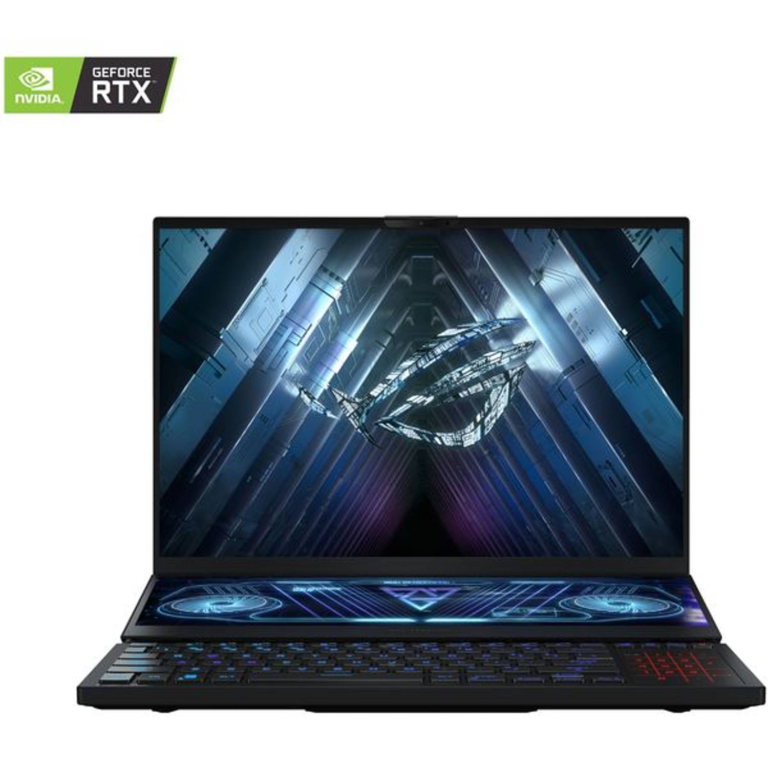 - Asus ROG Zephyrus Duo 16 GX650PY-NM048W Gaming Laptop – Ryzen 9 2.5GHz 32GB 2TB 16GB Win11 16inch WQXGA Black NVIDIA GeForce RTX 4090 English/Arabic Keyboard Middle East Version