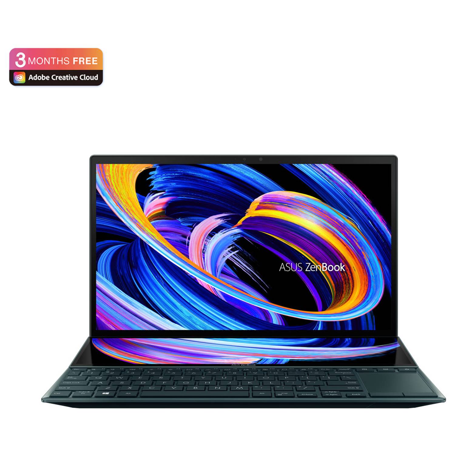 ASUS ZenBook Duo 14 (2021) Laptop – 11th Gen / Intel Core i7-1195G7 / 14inch FHD / 16GB RAM / 1TB SSD / 2GB NVIDIA GeForce MX450 Graphics / Windows 11 Home / English & Arabic Keyboard / Blue / Middle East Version – [UX482EGR-HY373W]