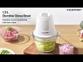 - Blaupunkt 450W Food Chopper With 1.2L Glass Bowl, 2 Speed Settings And Stainless Steel Blades, Compact Electric Vegetable And Meat Chopper With Egg Whisking Attachment For Nuts Herbs Ice Crushing PCG305