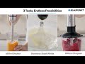 Experience seamless blending with this Hand Immersion Blender With Chopper, Whisk, and Beaker — designed for a range of kitchen tasks including blending smoothies, chopping vegetables, pureeing soups, and whipping cream with ease and precision.