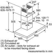 - Dimensions exhaust air (HxWxD): 635-965 x 900 x 500 mm