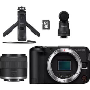 The EOS R50 V Mirrorless Camera Content Creator Kit is perfect for any budding creator. The RF-S 14-30mm F4-6.3 IS STM PZ Lens is perfect for shake-free handheld footage, while the HG-100TBR Tripod Grip lets you get creative by shooting from a range of angles. The crisp DM-E100 Stereo Microphone improves sound quality and a PRO V60 128 GB Memory Card means you can get started straight away.