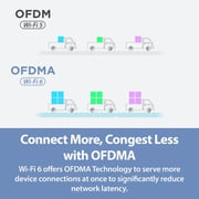 Small data packets destined for multiple devices are transmitted together and never have to queue up again. Perfect for bandwidth-hungry devices battling for bandwidth.