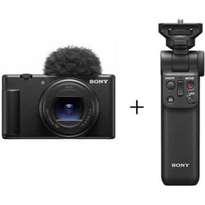 - Sony ZV-1 II 4K / 20.1MP Compact Vlog Digital Camera with 1″ Exmor RS CMOS Sensor and GP-VPT2BT Shooting Grip – Black