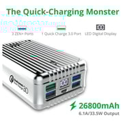 - Battery & PowerBattery Capacity26800 mAhBattery TypeLithium-ionPower Input3.7 VVoltage Input1.5 A (6.5 W)Voltage Output2.1 A (10.5 W)