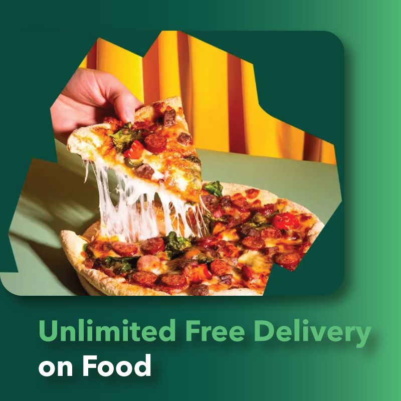 - Unlimited free delivery on Food, Groceries & Shops.